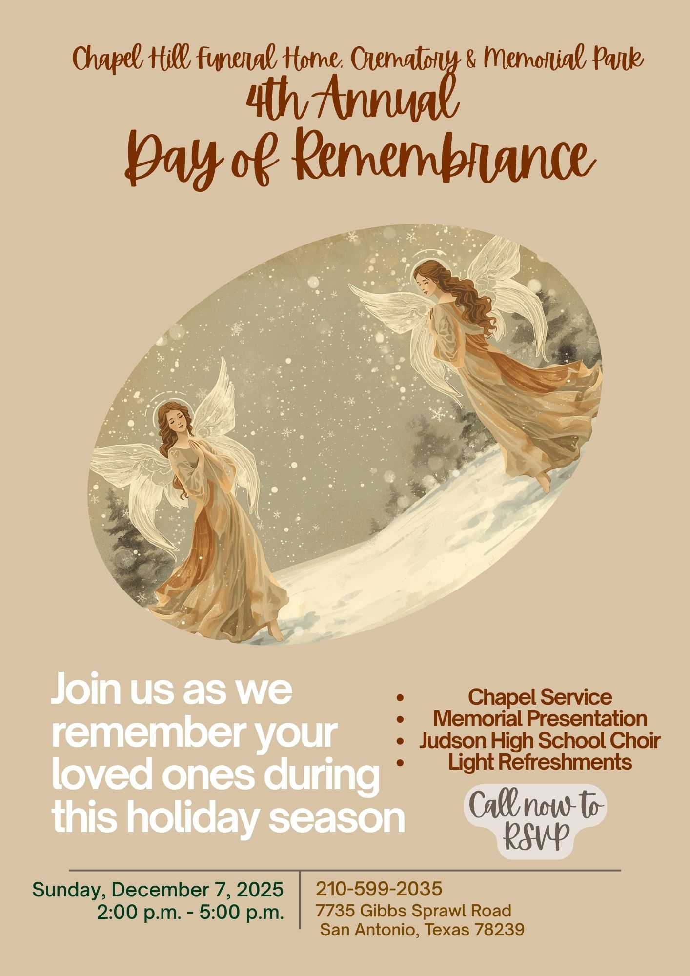 Saying goodbye to a loved one is never easy. The role of a proper funeral home is to provide families with a catalyst for their grieving and to take on all the logistics so that you and the people close to you can simply mourn together. At Chapel Hill Memorial Park & Funeral Home, we’re here to listen, to offer words of comfort, and to ensure funeral services that are in accordance with what your loved one would have wanted. We are also prepared to talk with you about cremation services; we have ample expertise in conducting honorable military funerals and veterans funerals; and we can walk you through funeral pre-planning, helping you lay out your wishes and enjoy peace of mind. With any questions, we invite you to contact Chapel Hill Memorial Park & Funeral Home, one of the most respected San Antonio, TX funeral homes.